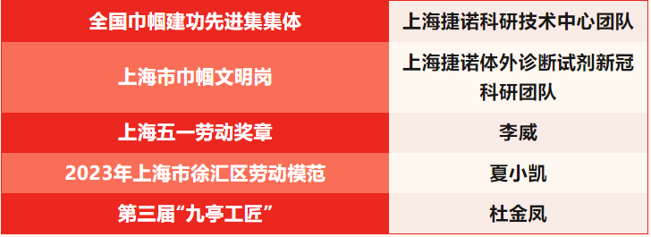 近日,上海市五一劳动表彰大会、徐汇区五一表彰大会隆重举行!其中,上海捷诺生物科技股份有限公司(以下简称“上海捷诺”)喜提多项荣誉称号。