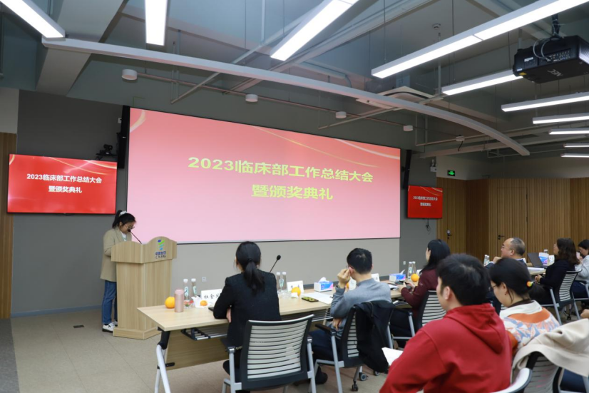 下半场,由临床部副经理刘晔主持2023年临床部工作总结暨颁奖典礼。临床部的同事们用生动活泼、诙谐幽默的形式,进行了个人述职以及工作感悟分享,以轻松愉快的方式讲述工作中的苦辣酸甜,收获了阵阵欢笑、掌声和感动的泪水。